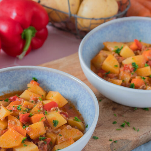 Mein Bauerntopf ist genau das richtige Gericht, für den kommenden Herbst, wenn die gemütlichen Tage beginnen und wir ganz besonders gerne Suppen und Eintöpfe essen. Mit Hackfleisch, Kartoffeln und viel Gemüse ist er nicht nur sättigend, sondern auch richtig lecker und gesund.