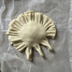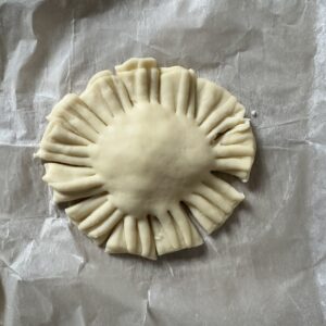 Die Taschen rundherum einschneiden und die Enden zusammendrücken, damit eine schöne Form entsteht.