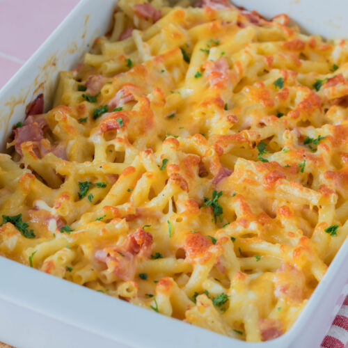 Der Makkaroni-Auflauf mit Schinken und Käse ist ein absoluter Klassiker, der immer schmeckt. Er ist unkompliziert, sättigend und beliebt bei Kindern & Erwachsenen. Mit nur wenigen Zutaten steht ein warmes Familienessen auf dem Tisch, das auch noch schnell gemacht ist. Wer möchte, kann den Auflauf mit Gemüse oder einer anderen Käsesorte abwandeln, so bleibt er vielseitig und passt sich den eigenen Vorlieben perfekt an.