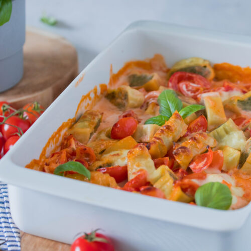Maultaschen sind ohnehin schon vielseitig: Ob in Brühe gekocht, angebraten oder als leckeres Pfannengericht. Als Auflauf funktionieren sie mindestens genauso gut. In Kombination mit Tomaten, einer cremigen Soße und geschmolzenem Mozzarella entsteht ein einfaches, aber richtig leckeres Ofengericht.
