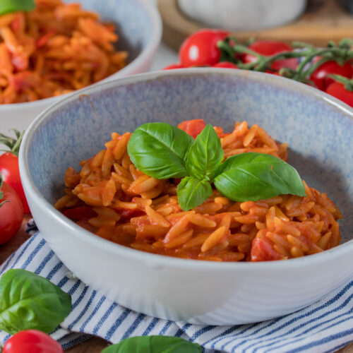 Dieses schnelle Orzo One-Pot Gericht mit Tomaten und Mozzarella wirst du lieben. (Orzo ist diese kleine, reisförmige Pasta, die einfach überall dazupasst, auch bekannt als Risoni oder Kritharaki.) Du benötigst nur wenige Zutaten, es ist ruckzuck zubereitet und du brauchst dafür auch nur einen Topf bzw. eine Pfanne.